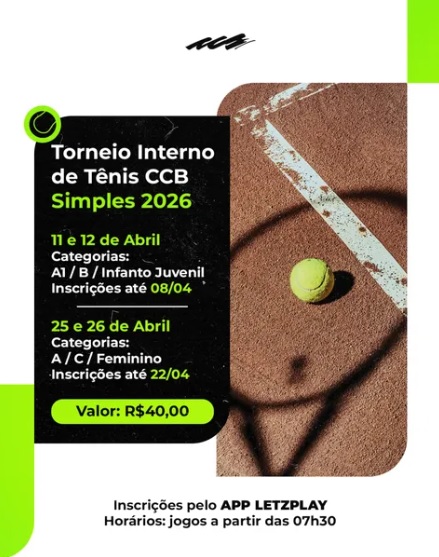 Vem aí o Torneio Interno de Tênis CCB – Simples 2026🏆